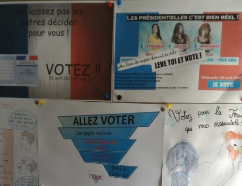En classe de première, les élèves ont réfléchi avec leur professeur Mme Astord au lien qui existe entre société démocratique et société de l’information. Pendant la période électorale, le droit de voter a constitué un sujet de prédilection. Après avoir fait des recherches documentaires concernant le vote en France et dans des pays voisins, les élèves ont fait campagne « Allez voter » qui s’adressait à leurs camarades majeurs. Ils ont confectionné des affiches.