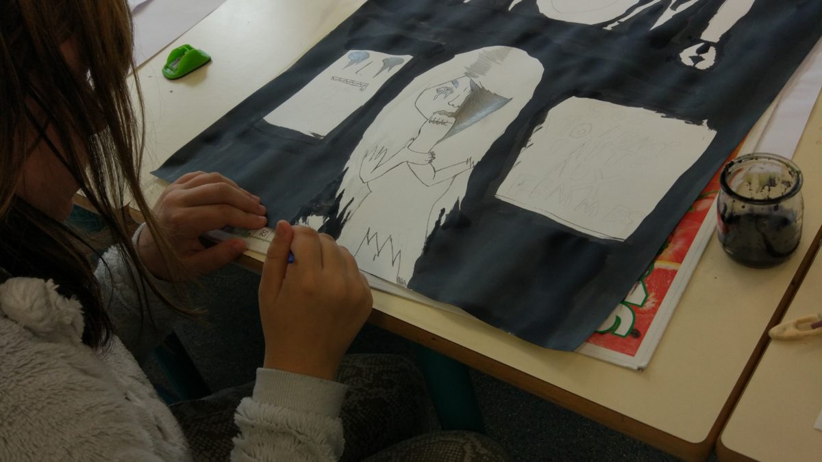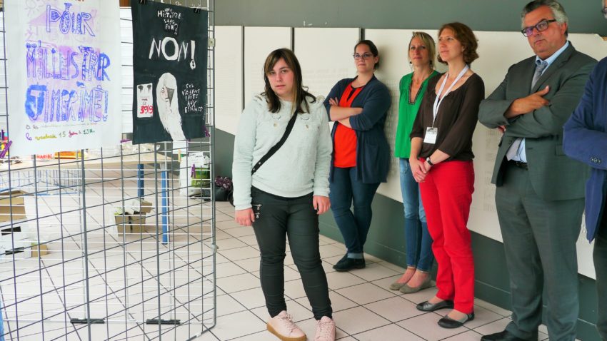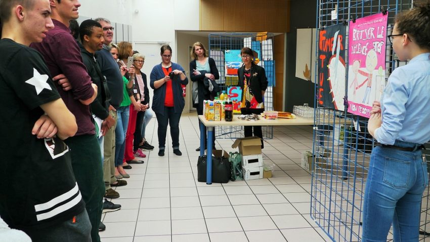 Découverte de l’objectif de cette semaine : la réalisation d’affiches d’utilité publique. Chaque élève s’attribue un thème, « pour l’égalité entre les sexes, contre les discriminations racistes homophobes, contre le harcèlement, contre la violence conjugale, contre les attitudes addictives, contre le sida et les maladies sexuellement transmissibles »…