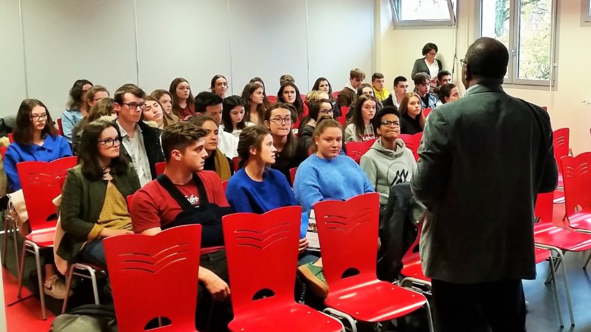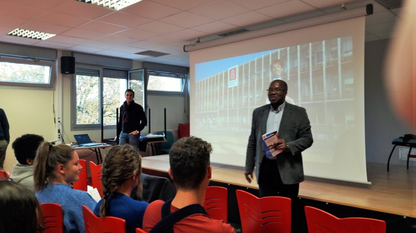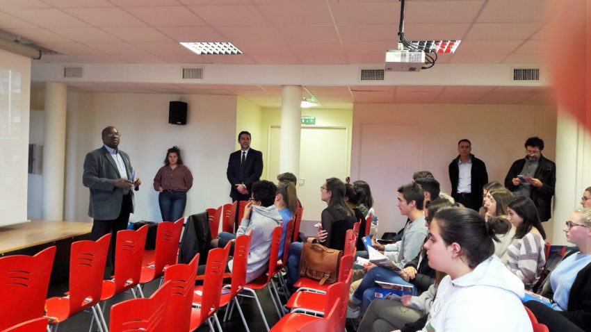 Au cours de sa tournée dans les établissements limousins assurant une préparation au concours d’entrée à l’IEP (Institut d’Etudes Politiques) de Bordeaux, N’Diaye, chargé de mission à la direction de Sciences-Po, a fait une halte au lycée Bernart de Ventadour, où il a été reçu par Olivier Soulier, Proviseur, et par Anne-Marie Ropars, Proviseure-Adjointe, en présence d’une vingtaine de scolaires et de professeurs impliqués dans le dispositif.